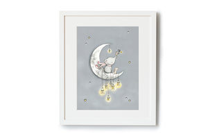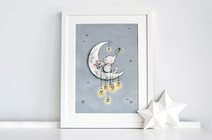 Printed with pigment inks onto thick textured archival paper, this children's giclee art print can be professionally framed in a wood frame (available in oak or with a white paint finish). Professionally tape sealed back, with picture cord attached and safety perspex, our frames arrive ready to hang! Please see the product photos for all the print size and frame options.