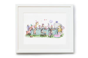 Printed with pigment inks onto thick textured archival paper, this children's giclee art print can be professionally framed in a wood frame (available in oak or with a white paint finish). Professionally tape sealed back, with picture cord attached and safety perspex, our frames arrive ready to hang! Please see the product photos for all the frame size options.