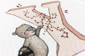 A cute personalised children's letter print, featuring the initial of a child's name, this custom kid's print would make a thoughtful gift for a newborn, baby shower, naming ceremony or christening gift. From A-Z, choose the first letter of a new baby’s name to create your own, one-of-a-kind bespoke kid's artwork, and we can also print additional personalised details underneath the illustrated letter too.