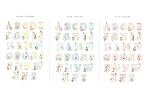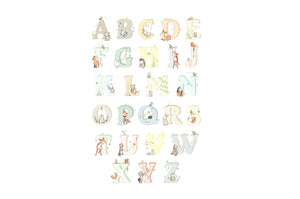 Choose your letter from the drop-down menu. Unfortunately the illustrated letter cannot be changed to lower case, a number, include punctuation, accent's or non-English characters due to the painted nature of this particular print. We also cannot change the painted characters/details of the letter.