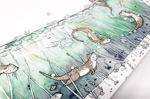 All our packaging is eco-friendly, keeping plastic to a minimum. Our sturdy bespoke bubble bags ensure our frames arrive safely through the post using only 5% biodegradable plastic and 95% air! We even wrap unframed prints in paper, using gum tape instead of Sellotape and paper packing tape instead of plastic parcel tape. We are after all borrowing this World from our children, so we believe their gifts should be respectful of our beautiful environment wherever possible.