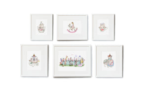Personalise this print : Available on the individual prints:Sugar Bowl Mouse,Rocking Horse Princess,Tea Cup Mouse,Princess Carriage,Enchanted Tea Party,The Royal Rabbit