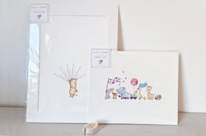 We ensure our children’s prints are presented beautifully with an acid-free archival quality frame mount. Warm white in colour and with a slight texture, these card frame surrounds complement our watercolour prints beautifully.