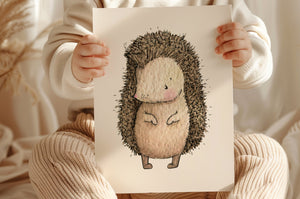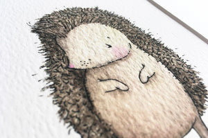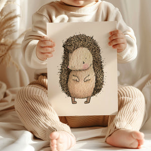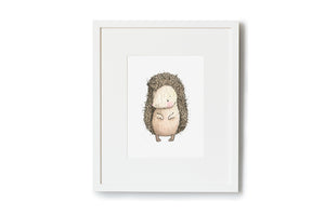 This gender-neutral nursery picture of a cute newborn baby hedgehog can be personalised with a child's name and birthdate under the illustration to create a personal newborn, baby shower or christening gift. There are three different print sizes available and an option to have your artwork professionally framed in a white wooden picture frame, perfect for a unisex baby nursery or woodland theme children's bedroom.