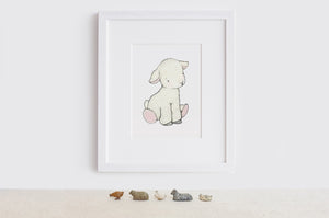 Printed with pigment inks on acid-free textured archival paper, this high quality children's Fine Art lamb animal print can also be gift wrapped in our bespoke animal gift wrap paper (select during checkout), with a striped twine bow, and we can include a gift message too on a silver embossed mouse card gift tag.