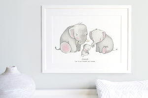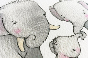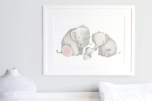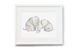 Celebrate the arrival of a newborn son or daughter with this sweet family picture gift, that can be treasured by Mummy, Daddy and baby for years to come. The adorable, soft grey elephants are available in two unframed print sizes, or add a white wooden picture frame for a beautifully presented children's artwork ready to display on a child's bedroom wall.