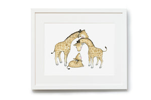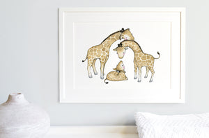 This cute children's giraffe picture would make a lovely gift for new parents, grandparents, a baby shower or christening present. Suiting a classic yet modern styled child's room, the soft pastel colour scheme of this children's artwork is perfect for a gender neutral nursery and for pairing with the rest of our Safari nursery decor collection.