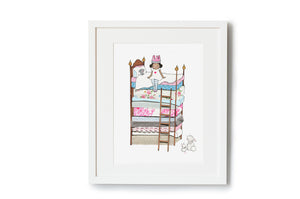 Printed with pigment inks onto thick textured archival paper, this children's giclee art print can be professionally framed in a wood frame (available in oak or with a white paint finish). Professionally tape sealed back, with picture cord attached and safety perspex, our frames arrive ready to hang! Please see the product photos for all the print size and frame options.