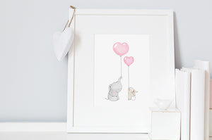 Available on the individual prints, click here: Elephant & Rabbit Best Friends, Pink Parade, Round Balloon