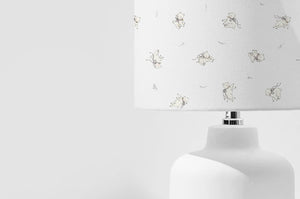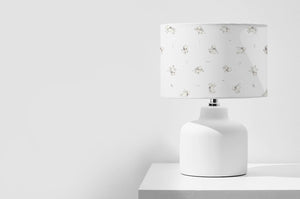 Children's counting sheep lampshade, available as a baby nursery ceiling light shade or to use with a children's bedroom lamp. Featuring a cute baby lamb print, this children's lampshade is made by hand in England to the highest standard, complying with all safety standards. This 30cm nursery lampshade is available with a UK Edison, European or USA light fitting, and we can gift wrap too, for a unique children's gift, perfect for styling a unisex nursery or gender neutral kid's room.