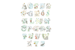 Choose your letter from the drop-down menu. Unfortunately the illustrated letter cannot be changed to lower case, a number, include punctuation, accent's or non-English characters due to the painted nature of this particular print. We also cannot change the painted animals/details of the letter. We can print two lines (e.g. name/date/message) under the illustrated letter, see example photo. We will write exactly what you write, so please make sure all is correct before you pay.