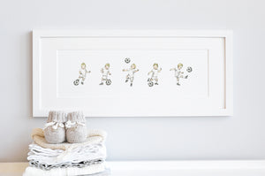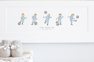 The perfect framed personalised children's football fan gift for any little footballer, choose a boy or girl team player, and represent your club kit with custom strip colours to make this a truly personal picture for a newborn baby, christening, kid's birthday or even father's Day. So whether you support Arsenal, Chelsea, Liverpool F.C, Manchester United, Man City, Newcastle, Tottenham Hotspur or you root for a competitive under dog football club, this custom framed children’s footballer wall art print is sure to be a key piece in a child's bedroom decor.