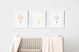 Printed with pigment inks on acid-free textured archival paper. You will receive 1x Apricot balloon with lion, 1x Soft Yellow with giraffe and 1x Linen balloon with zebra.