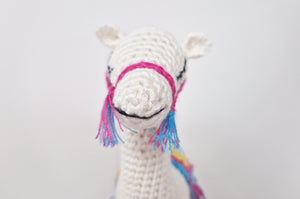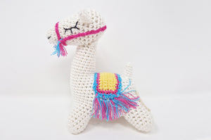 About - This cute llama rattle toy would make a fun gift for a baby boy or girl, and would look great in a modern baby nursery. Lovingly hand-crocheted using luxuriously soft yarn derived from the pulp of the organically grown and sustainably harvested bamboo trees, this bright llama rattle is eco friendly too!