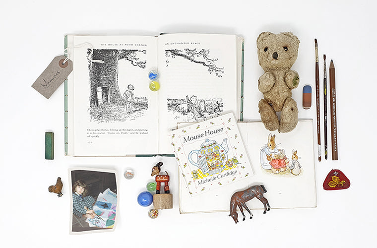 Growing up in Sussex, England, Jessica often walked through Ashdown forest to play pooh sticks on Pooh bridge with her family. Inspired by vintage toys, childhood memories and her favourite British story books, such as Winnie the Pooh, Beatrix Potter’s Peter Rabbit, Paddington bear, Jessica draws on her English heritage to dream up her very own cute animal characters to adorn children’s walls.