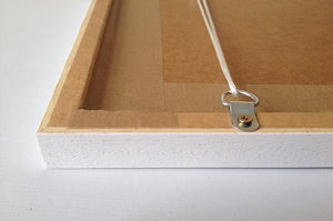 We place the print into the frame and seal the back with acid-free archival tape to add protection and presentation to the frame back. We also attach the picture cord so that your framed print is ready to hang straight out of the box and onto the wall (something we’ve heard is greatly appreciated by busy mums and dads!)